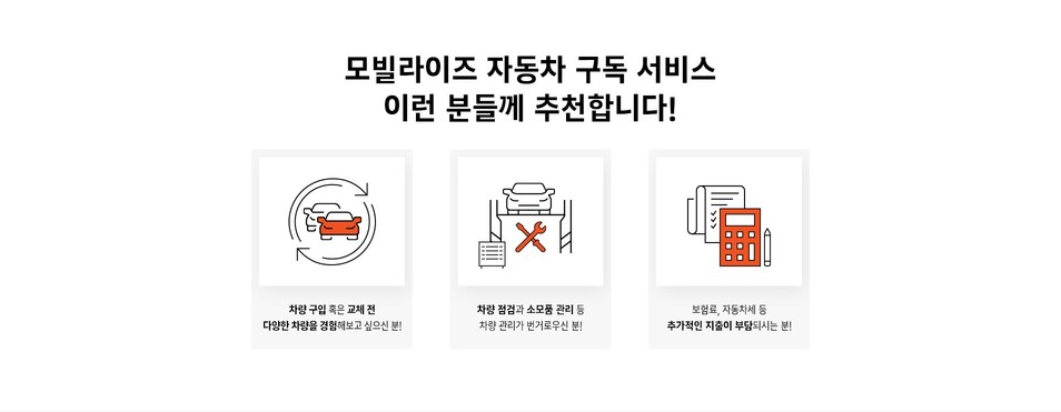 이용자들은 모빌라이즈를 통해 신차 구입 전 다양한 차량을 직접 경험하면서 최종 모델을 결정하는데 도움을 받을 수 있다는 장점이 있는데요.