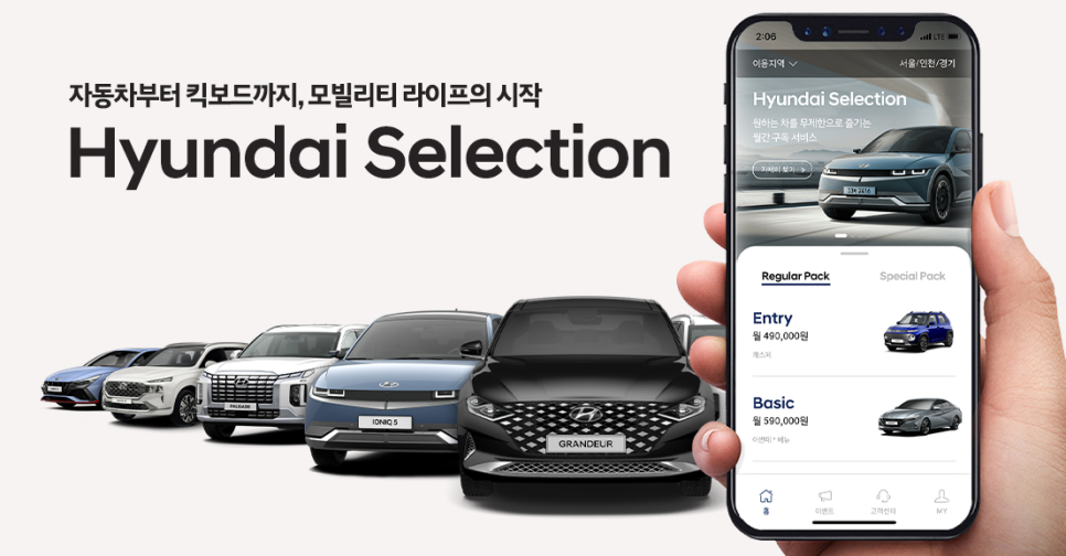 현대차의 모빌리티 구독 서비스 '현대 셀렉션'은 현대자동차의 다양한 차종 중에서 원하는 차를 골라 무제한으로 이용할 수 있습니다.
