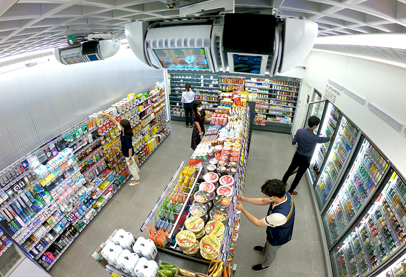 '3D 라이다'는 고객의 동선을 분석해 최적의 상품 운영전략을 찾기 위한 시스템으로 국내 편의점에 처음 도입됐습니다. 분석의 정확도를 높이기 위해 고성능 카메라 26대가 설치됐는데, 이를 통해 무인 운영시 상품 도난 가능성도 방지할 수 있습니다.