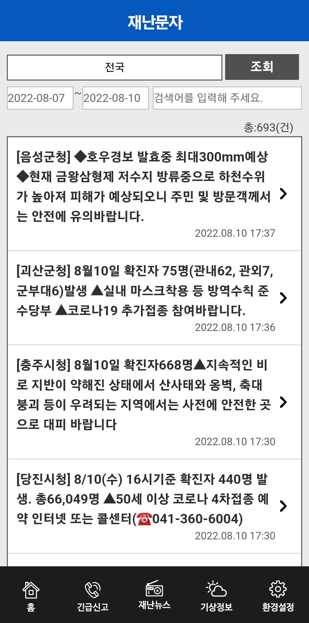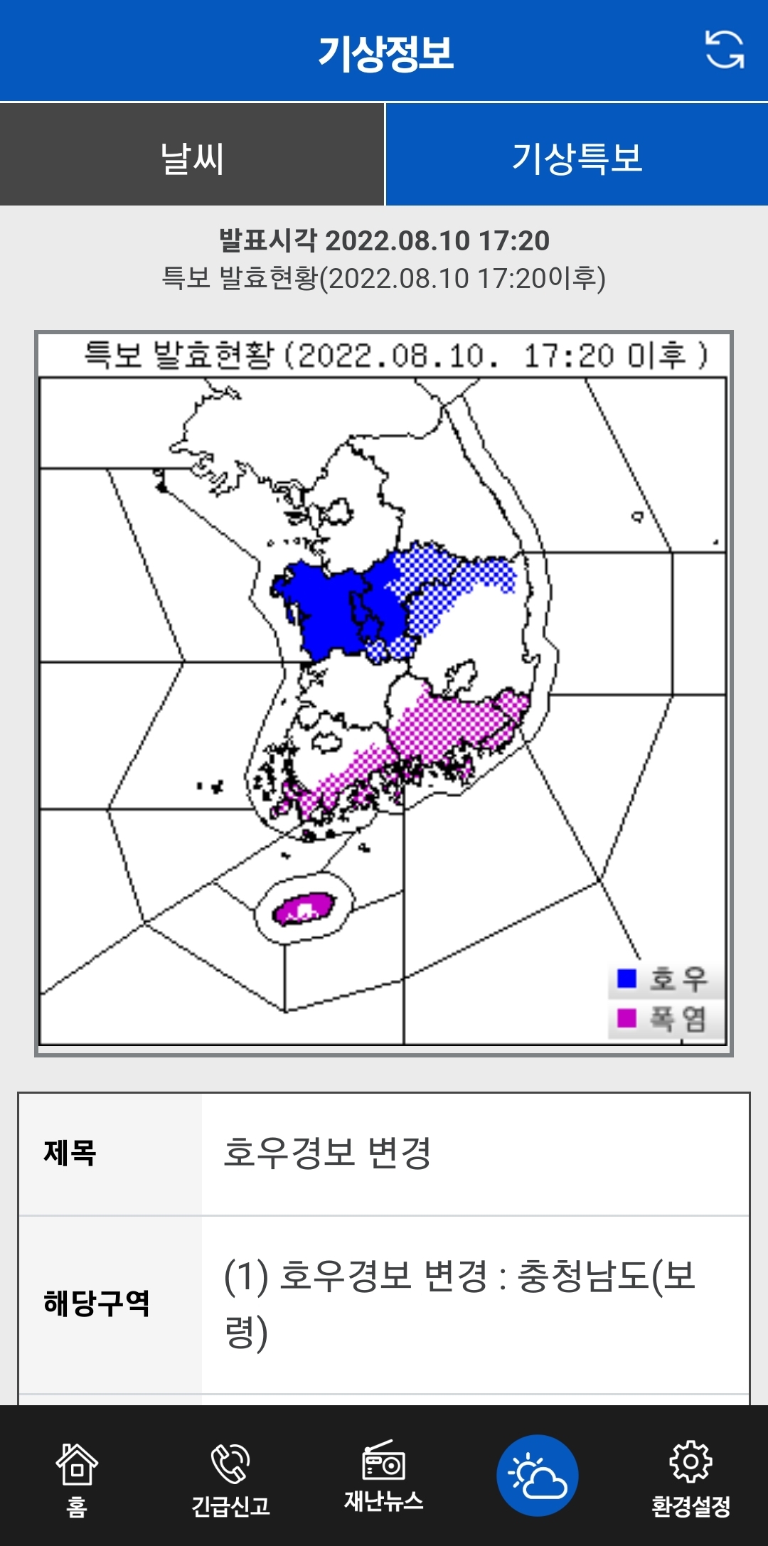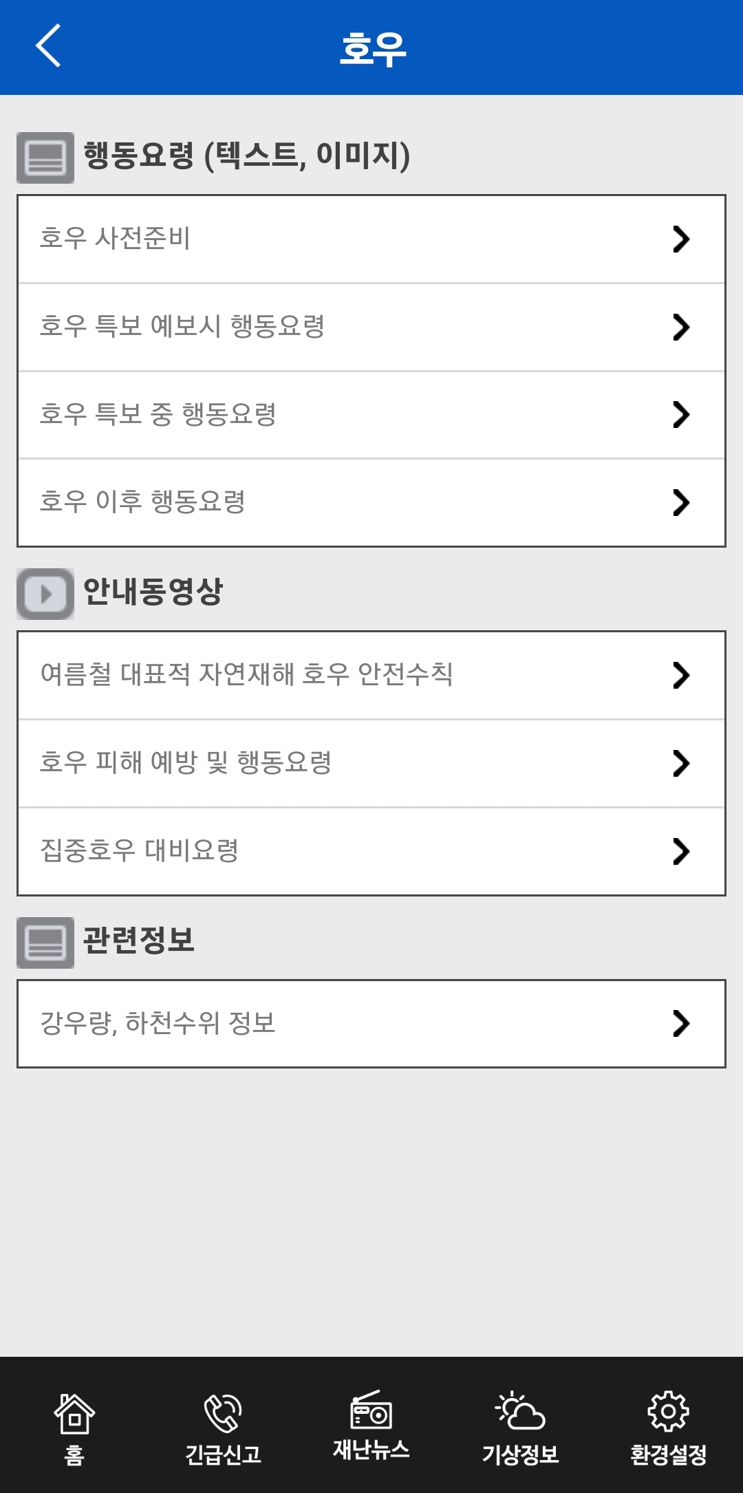 각종 기상정보와 침수, 태풍 등 다양한 재난 상황에 대한 소식을