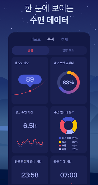 불면증으로 인해 매일 밤 뒤척이거나, 질 높은 수면을 원하는 분이라면 수면 어플 '슬립 시어리'를 이용해 보시길 추천드립니다.