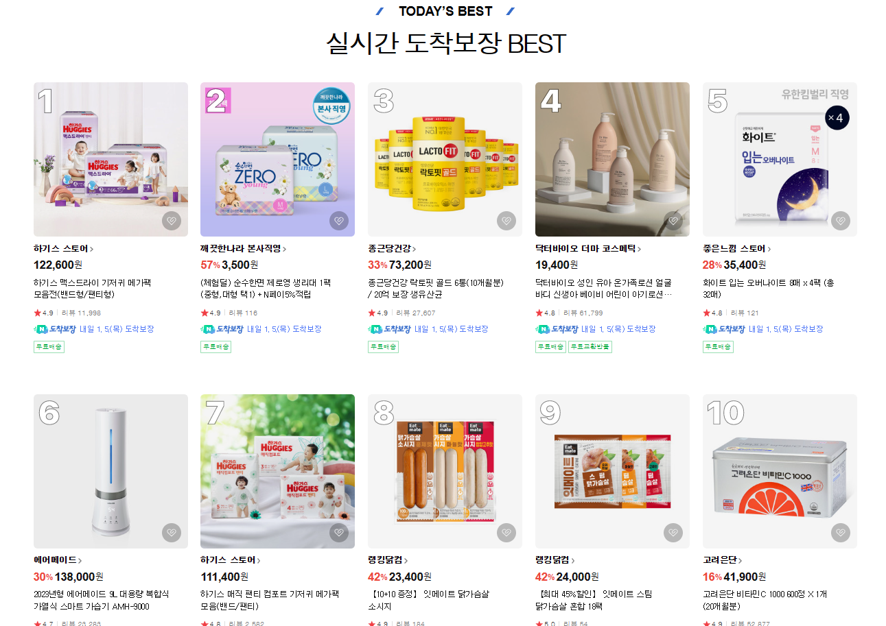 쿠팡이 시행하고 있는 로켓배송 시스템과도 유사한데요. 쿠팡은 익일배송은 물론 도착일 보장 서비스를 먼저 도입해 배송이 늦어질 경우 쿠팡캐시 1,000원을 보상하고 있습니다.