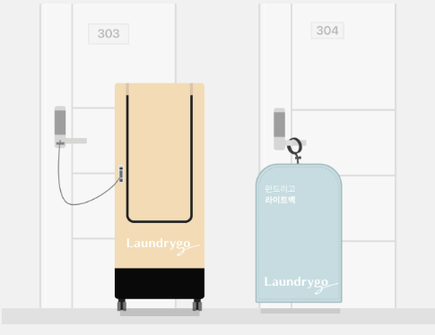 모바일 세탁대행 서비스 '런드리고'는 모바일앱으로 세탁물 수거를 요청한 후 전용 수거 케이지인 '런드렛'에 담아 집 앞에 내놓기만 하면 밤 중에 수거해 세탁을 마친 후 다시 가져다 주는 서비스입니다.